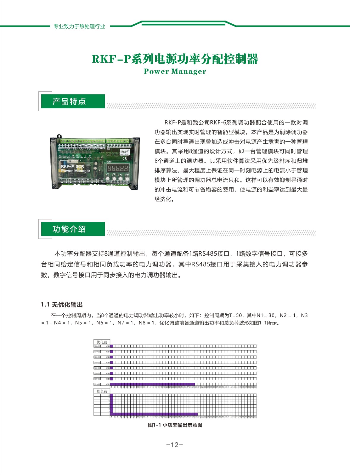 RKF-P是和我公司RKF-6系列調(diào)功器配合使用的一款對(duì)調(diào)功器輸出實(shí)現(xiàn)實(shí)時(shí)管理的智能型模塊。本產(chǎn)品是為消除調(diào)功器在多臺(tái)同時(shí)導(dǎo)通出現(xiàn)疊加造成沖擊對(duì)電源產(chǎn)生危害的一種管理模塊。其采用8通道的設(shè)計(jì)方式,即一臺(tái)管理模塊可同時(shí)管理8個(gè)通道上的調(diào)功器。其采用軟件算法采用優(yōu)先級(jí)排序和歸堆排序算法,最大程度上保證在同一時(shí)刻電源上的電流小于管理模塊上所管理的調(diào)功器總電流只和。這樣可以有效抑制導(dǎo)通時(shí)的沖擊電流和可節(jié)省增容的費(fèi)用,使電源的利益率達(dá)到最大最經(jīng)濟(jì)化。